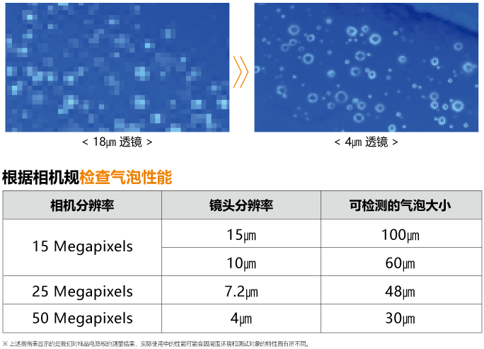 涂层检测中最关键的部分是气泡检测。为了确保精度,我们将50MP 超高分辨率相机与4μm 精密镜头集成到GENESYS-CC系统中,