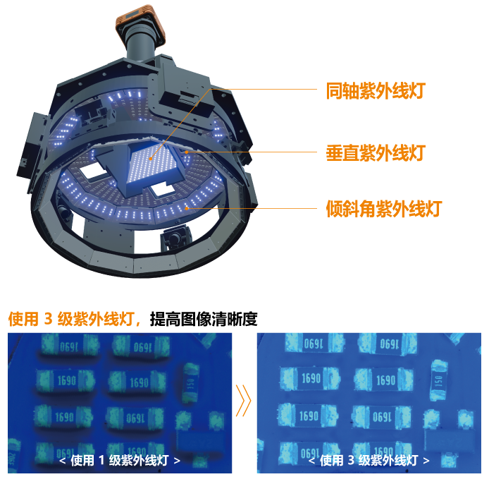 GENESYS-CC使用三种不同角度的UV照明:低角度、上角度和同轴照明。