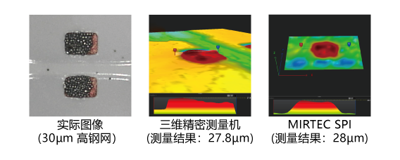 MS-11能够精确测量和检测小至0201mm的Mini-LED芯片上的焊膏,并能达到指定高度30㎛。