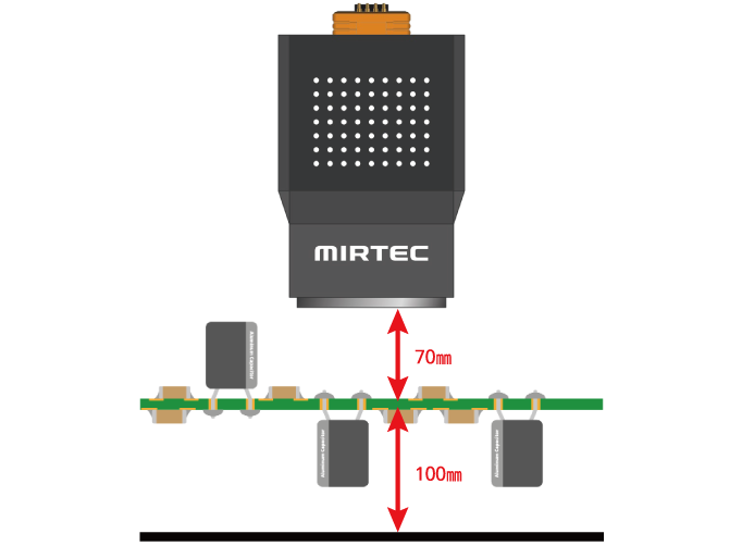 该系统的顶部间隙为 70mm,底部间隙为 100mm,可轻松检测带有高大元件的印刷电路板。