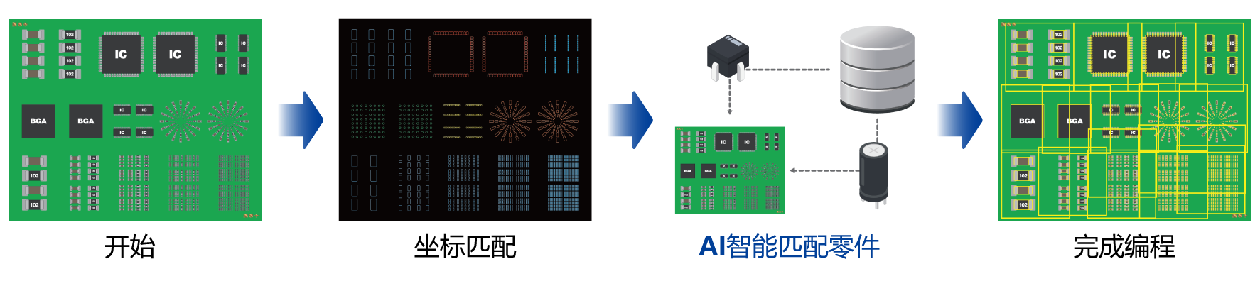 MIRTEC的自动匹配功能使用基于人工智能的深度学习,以最大限度地提高AOI编程过程的效率和准确性。