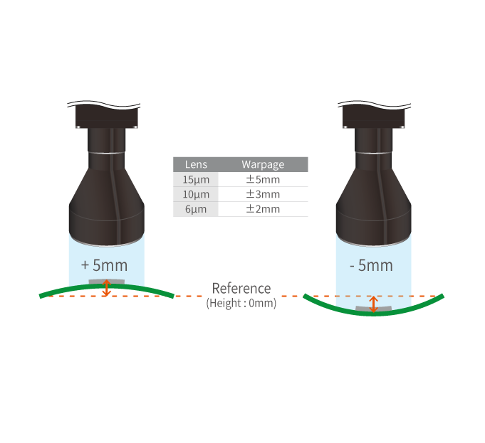 The precise height measurement capability of the machine allows to automatically detect and correct bending states of PCB board. Normal inspections can be conducted on even bent or warped PCBs.